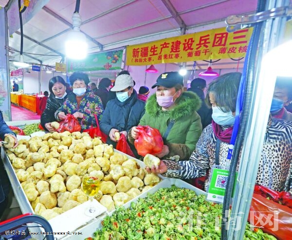圖六:農(nóng)產(chǎn)品購(gòu)物節(jié)上,市民們?cè)谶x購(gòu)?fù)撂禺a(chǎn)迎新年。
