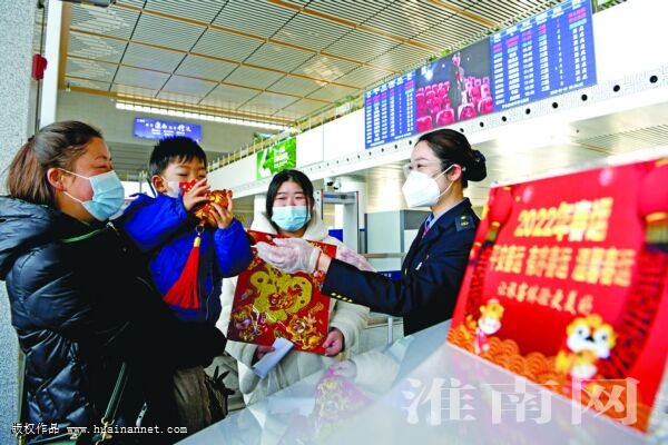 2022年春運(yùn)啟動以來,中國鐵路上海局集團(tuán)有限公司淮南西站統(tǒng)籌調(diào)度,突出“便捷、舒適、溫馨、智慧、人文”春運(yùn)服務(wù)主題,在做好常態(tài)化疫情防控同時,努力實(shí)現(xiàn)“平安春運(yùn)、有序春運(yùn)、溫馨春運(yùn)”目標(biāo)。圖一、淮南南站客運(yùn)員蒲靜(左)為旅客提供便民服務(wù)。圖二、淮南南站客運(yùn)員李娟(右)為旅客贈送春聯(lián)和虎年飾品。圖三、淮南南站客運(yùn)員在候車大廳玻璃上裝飾虎年窗花。(記者 攝)