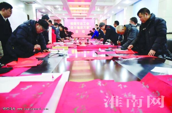 近日,市總工會(huì)組織我市書法家走進(jìn)中煤新集一礦開(kāi)展“送萬(wàn)福、進(jìn)萬(wàn)家”活動(dòng),為廣大職工送去濃濃祝福;鸺t喜慶的春聯(lián)散發(fā)著淡淡墨香,承載著新春的祝福。(通訊員 高 強(qiáng) 攝)