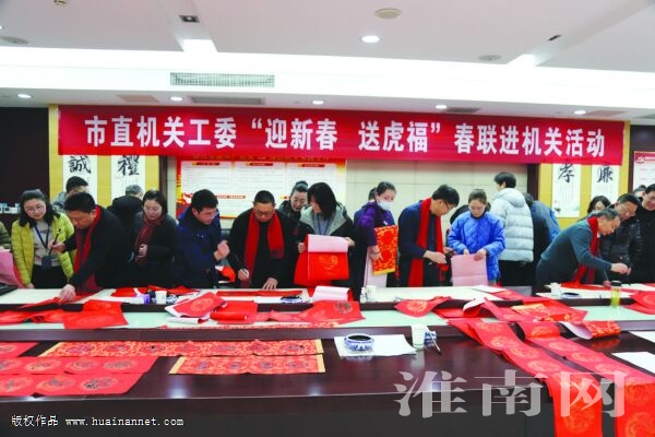 為營(yíng)造歡樂(lè)祥和的新春節(jié)日氛圍,1月27日,市直機(jī)關(guān)工委組織開(kāi)展“迎新春 送虎福”春聯(lián)進(jìn)機(jī)關(guān)活動(dòng),邀請(qǐng)8位書法家現(xiàn)場(chǎng)為市直機(jī)關(guān)干部職工書寫春聯(lián)200余副、福字300余個(gè)。(記者 李東華 通訊員 丁冬冬)