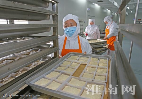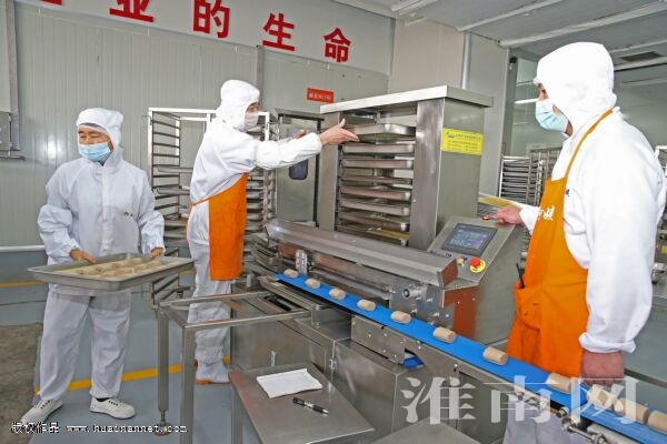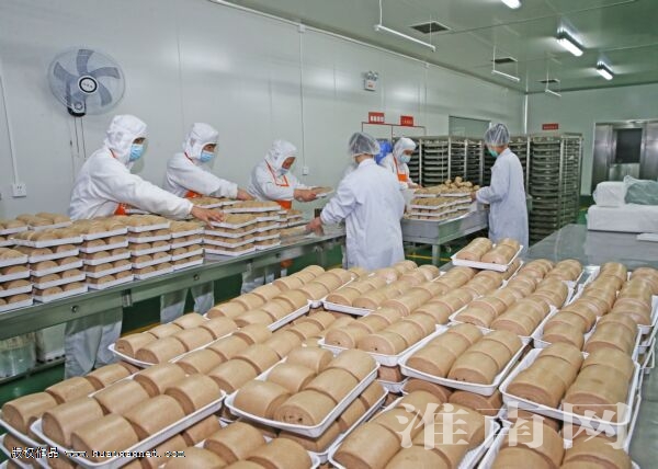 4月4日,位于八公山工業(yè)園的安徽杜阿姨食品有限公司生產(chǎn)車間,工人們正在全力以赴生產(chǎn)各類特色面點。作為上?挂弑9┢髽I(yè),該公司嚴格落實疫情防控措施,百余名員工堅守生產(chǎn)一線,加工、儲運、配送、供應等各環(huán)節(jié)無縫銜接,確保前往上海食品供應不斷檔、不漲價。(記者 倪軍)