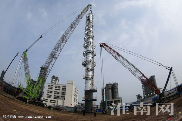 起吊作業(yè)現(xiàn)場,隨著現(xiàn)場指揮的一聲哨音,兩臺履帶吊車發(fā)出轟鳴聲,直徑2.8m、高61.2m、起吊總重近160噸的C-1002A脫異丁烯塔在500噸主吊和180噸溜尾吊緊密配合下,順利完成塔體整體提升、溜尾遞送、位移和精確就位等動作,安全矗立在丁烯-1項目建設(shè)現(xiàn)場,實現(xiàn)了C-1002A脫異丁烯塔“塔起燈亮”模塊化整體吊裝。 (記者 張昌濤 通訊員 趙天奇)