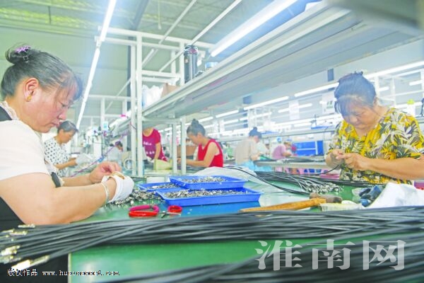 壽縣安豐塘鎮(zhèn)戈店村通過(guò)引進(jìn)電子加工項(xiàng)目,加快鄉(xiāng)村產(chǎn)業(yè)發(fā)展,壯大村集體經(jīng)濟(jì),增加群眾收入,助力鄉(xiāng)村振興。圖為戈店村群眾在村里新建的安徽貿(mào)聯(lián)電子科技有限公司加工電子產(chǎn)品。(記者 陳彬 攝)