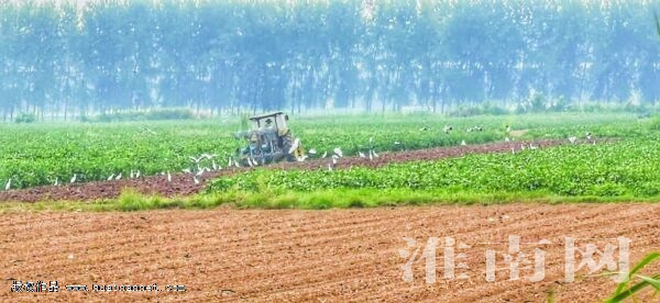 8月28日,村民在毛集實(shí)驗(yàn)區(qū)東風(fēng)湖整理土地、機(jī)播蘿卜,一群群白鷺相伴期間時(shí)而覓食、時(shí)而起舞,給田園增添了一道美麗的風(fēng)景。東風(fēng)湖沿淮因其特殊的土質(zhì)和經(jīng)年累月的生態(tài)種植,區(qū)域生態(tài)環(huán)境越來(lái)越好,吸引了大量候鳥前來(lái)?xiàng)ⅰ?記者 陳海濤 攝)