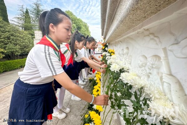 9月30日,鳳臺縣板張集革命烈士陵園,前來祭奠的群眾絡(luò)繹不絕。當(dāng)日是第9個烈士紀(jì)念日,社會各界人士來到烈士陵園,向革命先烈敬獻(xiàn)鮮花,瞻仰烈士紀(jì)念碑,致敬英烈、緬懷英烈。圖為少先隊員向烈士祭獻(xiàn)鮮花。 (記者 倪 軍 攝)
