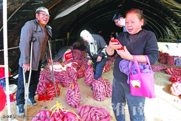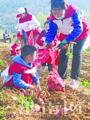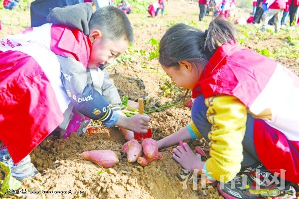 自2019年以來,每到蜜薯豐收季,淮南市紅十字會都會組織100多名志愿者上山幫助王士兵收獲蜜薯,體驗(yàn)勞動,并通過愛心義買義賣形式,解決銷售問題。(記者 陳 彬 攝)