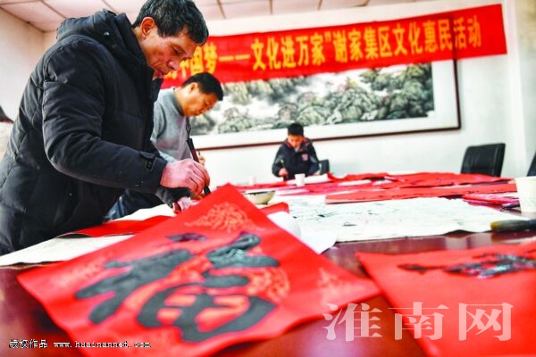 1月17日下午,由謝家集區(qū)新時代文明實踐中心主辦、區(qū)文旅局承辦的“我的中國夢——文化進萬家”寫春聯迎新春活動在區(qū)文化館舉行;顒蝇F場,書法愛好者們一筆一畫、提按起伏之間,一副副滿載美好祝愿的春聯,一個個喜慶的福字躍然紙上。工作人員將寫好的春聯送到現場群眾手里,把真摯的祝福送到了人民群眾的心坎上,讓老百姓在家門口享受到貼心的“文化年貨”。(通訊員 秦龍 記者 蘇強 攝)