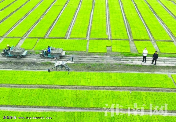6月1日,鳳臺(tái)縣桂集鎮(zhèn)顏敏農(nóng)機(jī)服務(wù)專(zhuān)業(yè)合作社育秧工廠(chǎng),農(nóng)技人員利用無(wú)人機(jī)給水稻秧苗噴灑葉面肥。據(jù)了解,鳳臺(tái)縣今年預(yù)計(jì)種植55萬(wàn)畝,目前有120多家現(xiàn)代化育秧工廠(chǎng)。這種“育種+插秧”為一體的訂單生產(chǎn)方式,既節(jié)省了成本,又方便了農(nóng)戶(hù),農(nóng)民種糧積極性大大提高。 (記者 倪 軍 攝)