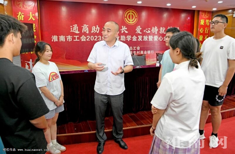 近日,安徽省勞模、大唐田家庵發(fā)電廠工程師楊昆(中)在市總工會2023年金秋助學現(xiàn)場為受資助大學生上好開學第一課,并在課下與學生交流,鼓勵學生自強不息,學好本領(lǐng),服務(wù)社會。新學期開學之際,市總工會連續(xù)26年開展金秋助學活動,邀請勞模上好開學第一課,組織愛心企業(yè)開展捐贈。據(jù)悉,今年我市各級工會已籌集資金370余萬元,擬資助2570名困難學生。(記者 陳 彬 攝)