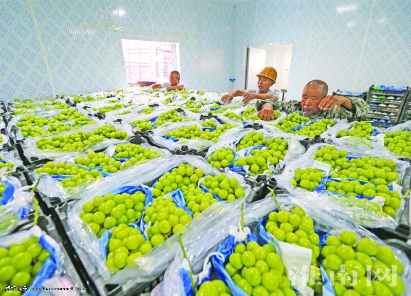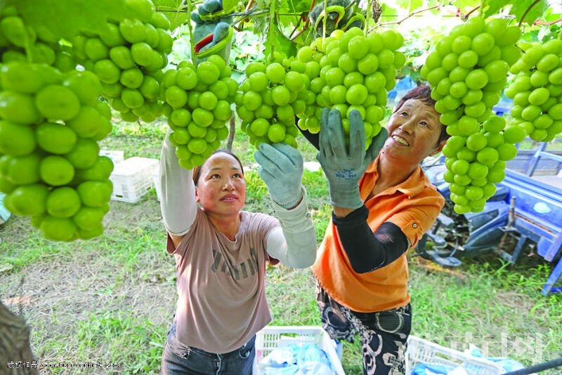 9月11日,壽縣八公山鄉(xiāng)豐盛水果種植專業(yè)合作社葡萄種植園內(nèi)原生態(tài)陽光玫瑰葡萄掛滿枝藤,員工采摘成熟的葡萄,整理打包,裝車外運(yùn),供應(yīng)市場(chǎng)。近年來,八公山鄉(xiāng)圍繞“農(nóng)業(yè)增效、農(nóng)民增收”目標(biāo),積極調(diào)整農(nóng)業(yè)產(chǎn)業(yè)結(jié)構(gòu),大力發(fā)展酥梨、桃子、葡萄、貢棗、石榴、蜜薯等特色產(chǎn)業(yè),同時(shí)依托八公山景區(qū)景點(diǎn),采取“合作社+基地+農(nóng)戶”模式,把果園打造成觀光、旅游、采摘基地,吸引游客賞花、摘果,促進(jìn)農(nóng)旅融合,助力鄉(xiāng)村振興。(記者 倪 軍 攝)