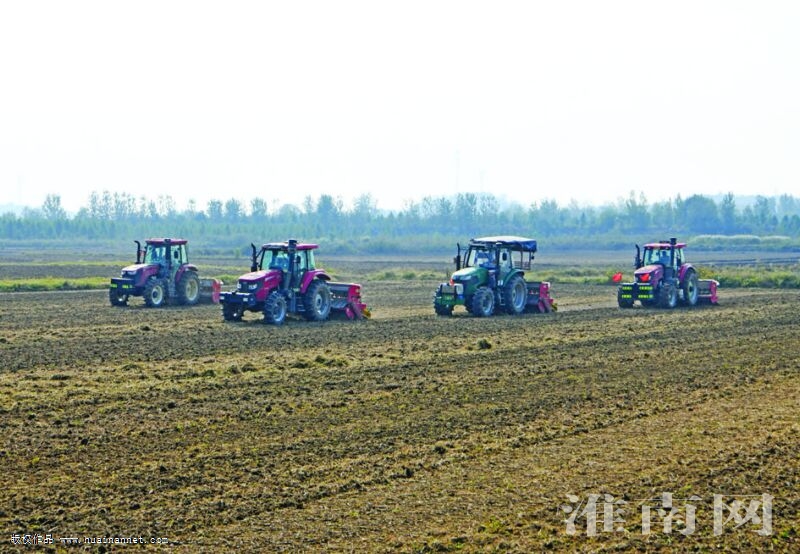 10月24日,鳳臺縣劉集鎮(zhèn)淝北村秋種現(xiàn)場,糧食種植專業(yè)合作社、種糧大戶組織多功能一體農用機械統(tǒng)一種植小麥,實現(xiàn)旋耕、鎮(zhèn)壓、播種、施肥同步進行。當日是24節(jié)氣霜降,農諺說“霜降種麥正當時”,淮河兩岸田間地頭一片忙碌的秋種景象。(記者 陳彬 攝)