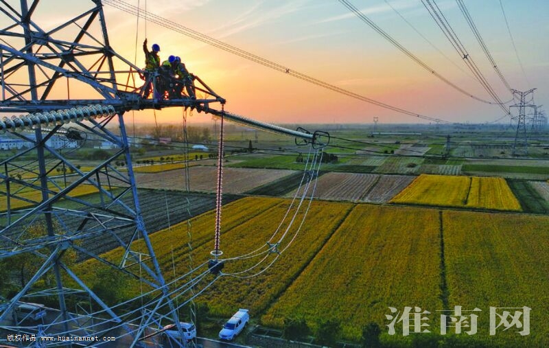 近日,國網(wǎng)淮南供電公司組織人員在超高壓500千伏袁淮5329線16號30米高空,進行耐張桿塔跳線安裝工作。500千伏袁淮5329線是田集電廠能源外送的主要通道,對全線開展綜合檢查,確!坝宥榷逼陂g電力主動脈送電安全。(記者 倪 軍 通訊員 王明松 攝)