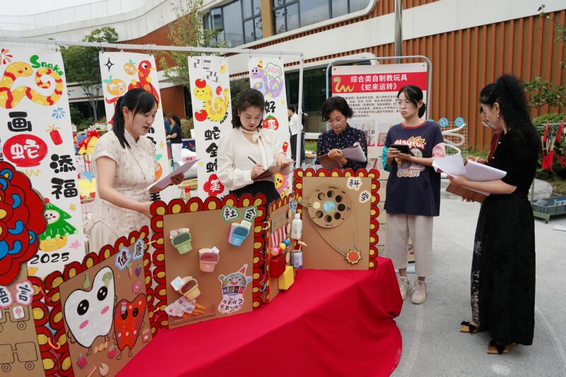 近日,2025年淮南市幼兒園優(yōu)秀自制玩教具展評活動現(xiàn)場賽在淮南高新區(qū)中心幼兒園杜鵑路總園舉行。本次活動由市教育體育局裝備中心主辦,200余名教師帶著83件參評作品齊聚一堂,涵蓋綜合類、運動類、益智類、科學(xué)類、建構(gòu)類、藝術(shù)類六大類別。教師們利用日常生活中的常見材料,精心制作出一件件新穎獨特、玩法多樣、美觀實用的教玩具作品,充分展現(xiàn)了幼兒教師的創(chuàng)新智慧與教育匠心。