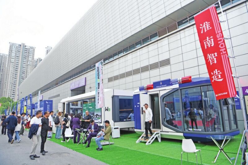 圖三:觀眾參觀安徽中輝集團(tuán)房屋科技有限公司展出的太空艙。