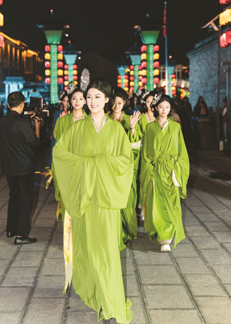 磚石斑駁的古城墻上,一群身著戰(zhàn)國(guó)袍的佳麗裊裊走過(guò),千年車轍深深的青石板路與現(xiàn)代時(shí)尚氣息交織,仿佛完成了一場(chǎng)穿越時(shí)空的對(duì)話。