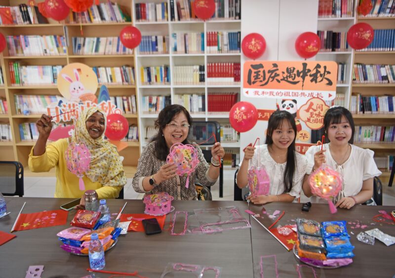 國(guó)慶中秋佳節(jié)來(lái)臨,安徽理工大學(xué)組織留學(xué)生走進(jìn)社區(qū),與社區(qū)小朋友一起做彩燈,猜燈謎,了解中秋節(jié)習(xí)俗,感受中華優(yōu)秀傳統(tǒng)文化魅力。圖為9月27日,安徽理工大學(xué)留學(xué)生走進(jìn)淮南經(jīng)濟(jì)技術(shù)開(kāi)發(fā)區(qū)洛西社區(qū),學(xué)習(xí)制作中秋燈籠,體驗(yàn)中秋傳統(tǒng)文化。