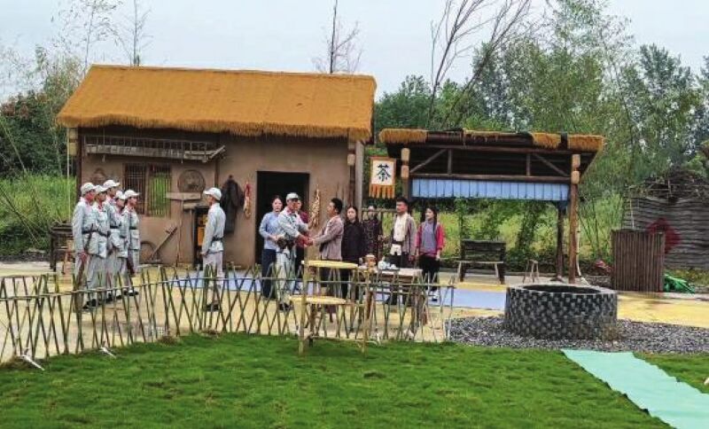 “砰砰砰……”“轟轟轟……”活動(dòng)當(dāng)天,在焦崗湖影視城新建的《淮南烽火》實(shí)景劇場內(nèi),突然“槍聲大作”“水炮沖天”……這是影視城升級(jí)后“大型實(shí)景交互式沉浸游”的開幕名場面,吸引眾多游客觀看。焦崗湖影視城依托現(xiàn)有資源,以“一出好戲”為主題,構(gòu)建“演藝體驗(yàn)+沉浸式互動(dòng)+影視片場+氛圍商業(yè)”融合業(yè)態(tài),形成“游購?qiáng)食宰⌒小比芈糜紊鷳B(tài),面向全齡段客群提供沉浸式休閑體驗(yàn)。