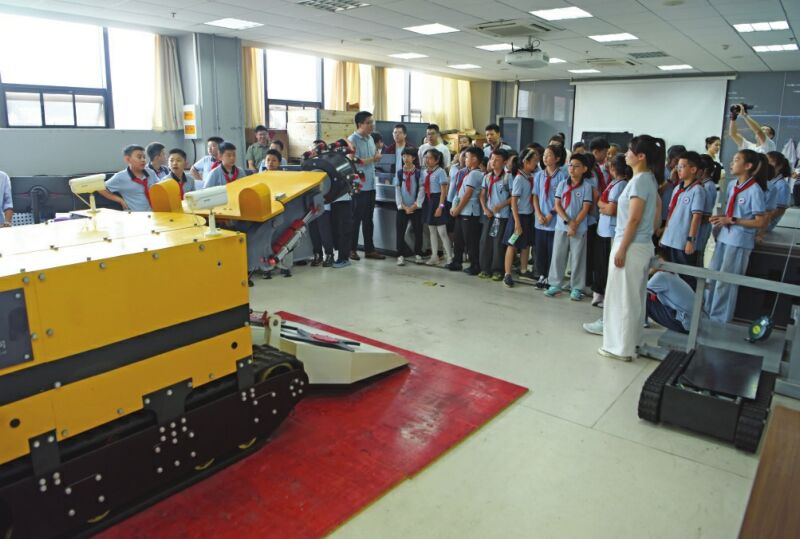 (記者 付莉榮)“太神奇了,這個(gè)機(jī)器的頭部頂端像個(gè)狼牙棒,通過遠(yuǎn)程操作,在井下可以進(jìn)行無人智能采煤,提高了工作效率,也保障了人員安全!10月8日上午,安徽理工大學(xué)深部煤礦采動(dòng)響應(yīng)與災(zāi)害防控國家重點(diǎn)實(shí)驗(yàn)室里傳來陣陣驚嘆。田家庵區(qū)第十八小學(xué)組織社會(huì)實(shí)踐活動(dòng)走進(jìn)高校,同學(xué)們近距離體驗(yàn)操作井下智能掘進(jìn)機(jī)設(shè)備,并通過科學(xué)課、興趣實(shí)驗(yàn)、游戲互動(dòng),真切感受科學(xué)魅力。