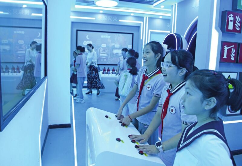 圖二:10月8日,田家庵區(qū)第十八小學(xué)學(xué)生走進(jìn)安徽理工大學(xué)安全科普館,通過互動(dòng)游戲?qū)W習(xí)安全知識(shí)。
