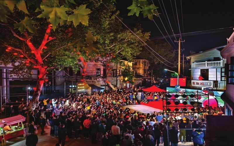 10月12日晚,田家庵區(qū)2025年淮河老街1952“漫步老北頭轉(zhuǎn)角遇到戲”首屆少兒戲曲大賽在東城市場(chǎng)北門聚仙戲樓門前熱鬧開演。