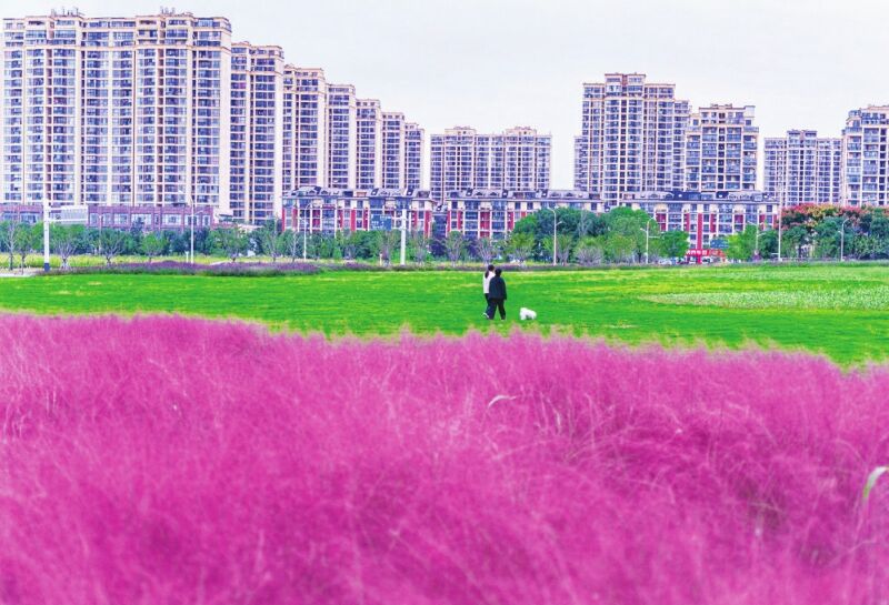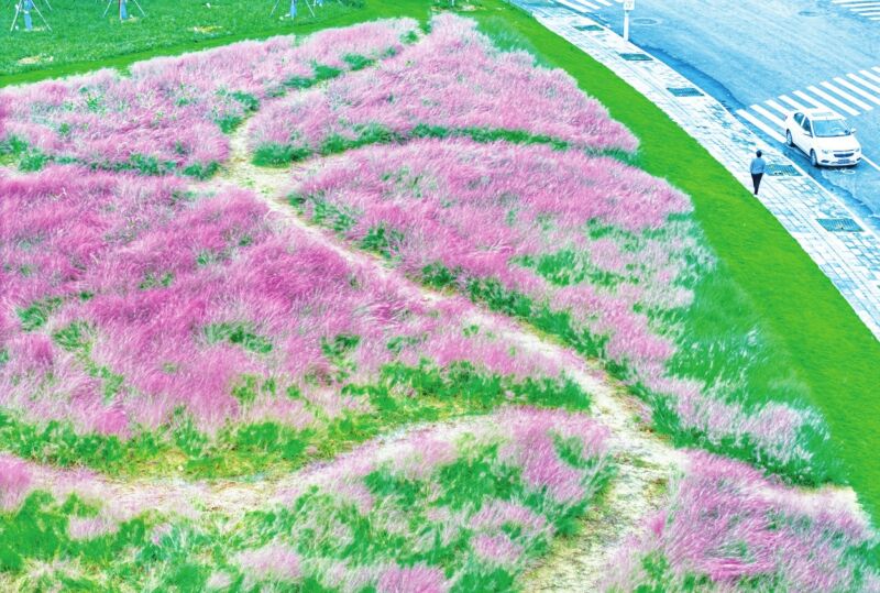 秋意漸濃,淮南高新區(qū)如意公園的粉黛亂子草綻放成一片夢幻海洋。如煙似霞的粉色花穗隨風搖曳,在公園大草坪上泛起溫柔漣漪,為城市披上浪漫濾鏡。漫步其間,齊腰的粉色云霧縈繞身側,仿佛闖入莫奈的油畫世界,成為人們拍照打卡的絕佳勝地。