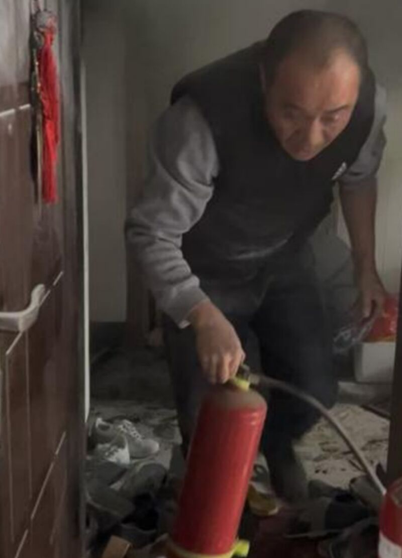 “屋里還有電嗎?”面對驚慌失措的住戶,劉鵬遠異常冷靜。得知電路未斷,他立即意識到二次災(zāi)害的風(fēng)險:“快去二樓關(guān)總電閘!”指揮住戶切斷電源后,這個平日里與鋼鐵機械打交道的漢子,拎起兩個滅火器,毫不猶豫地沖向了被濃煙彌漫的樓梯間。