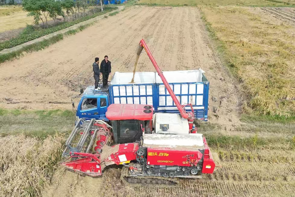 記者從市農(nóng)業(yè)農(nóng)村部門了解到,今年,我市種植水稻419.81萬畝。針對持續(xù)陰雨天氣給秋糧收獲與晾曬工作帶來的不利影響,市農(nóng)業(yè)農(nóng)村部門及時發(fā)布了搶收搶種技術(shù)指導意見,要求各地切實抓好“三秋”生產(chǎn)指導服務,迅速行動,全力開展搶收作業(yè)。同時,強化包村聯(lián)戶服務制度,農(nóng)技農(nóng)機人員深人生產(chǎn)一線,跟進技術(shù)指導和現(xiàn)場服務。充分發(fā)揮農(nóng)機應急作業(yè)服務隊的重要作用,積極協(xié)調(diào)履帶式聯(lián)合收割機下田作業(yè)。全市共調(diào)度聯(lián)合收割機1.59萬臺,日收割能力達40萬畝。發(fā)動農(nóng)機社會化服務中心、農(nóng)機合作社,開足馬力對含水率過高的糧食進行烘干,全市現(xiàn)有烘干機0.18萬臺,日烘干能力達3.6萬噸。截至10月30日,全市已經(jīng)收割水稻379.03萬畝,占應收任務的90%以上。(記者 張明星 攝影報道)