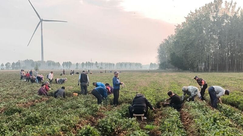 11月4日,鳳臺(tái)縣尚塘鎮(zhèn)碩博農(nóng)機(jī)合作社負(fù)責(zé)人李效龍趁晴好天氣組織社員采摘、晾曬夏花生。今年,李效龍通過(guò)調(diào)整種植結(jié)構(gòu),共種植夏季花生近千畝,經(jīng)過(guò)科學(xué)管理,畝產(chǎn)達(dá)400公斤,實(shí)現(xiàn)土地增收、農(nóng)業(yè)增效。圖為社員正在收獲花生的場(chǎng)景。