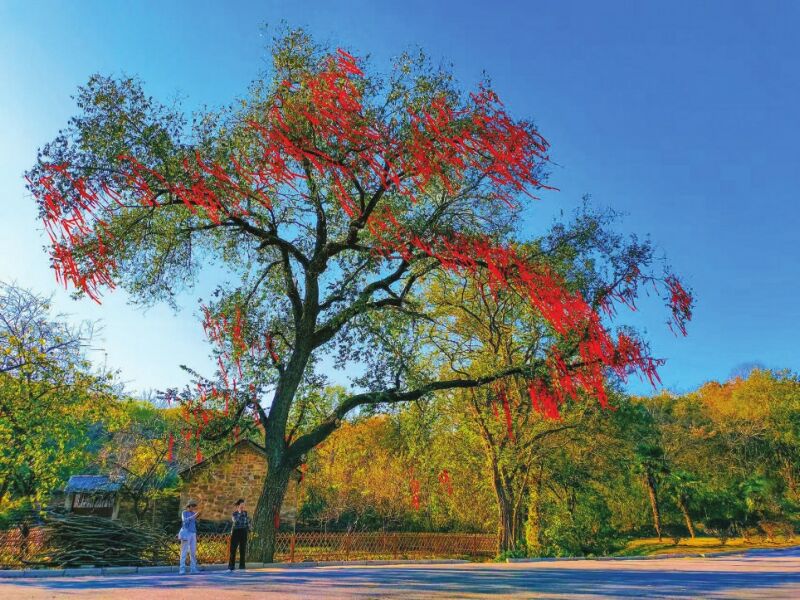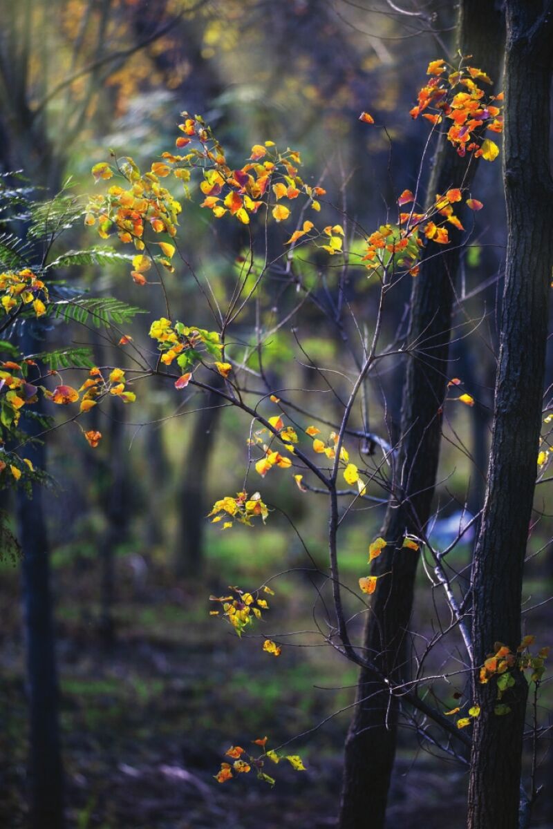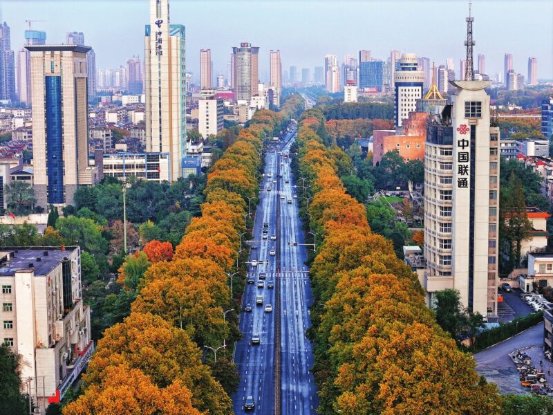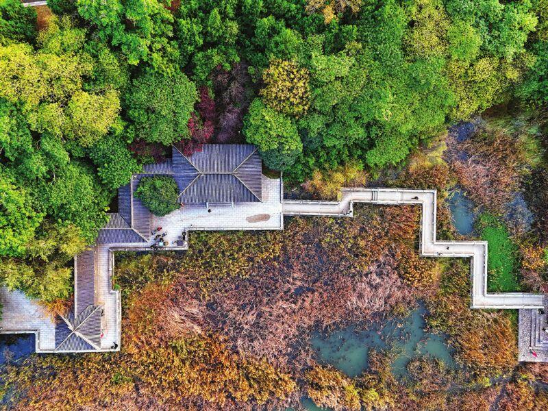 初冬的淮南尚未褪去深秋的斑斕底色,反倒多了幾分清冽中的溫柔。街頭的行道樹依舊枝葉繁茂,金黃、橙紅的葉片在微風(fēng)中搖曳生姿,陽光透過枝葉灑下斑駁光影;舜耕山上層林盡染,漫山的彩葉與山間的亭臺(tái)相映成趣,勾勒出一幅詩意盎然的初冬畫卷,將深秋的余韻與初冬的清歡完美融合。