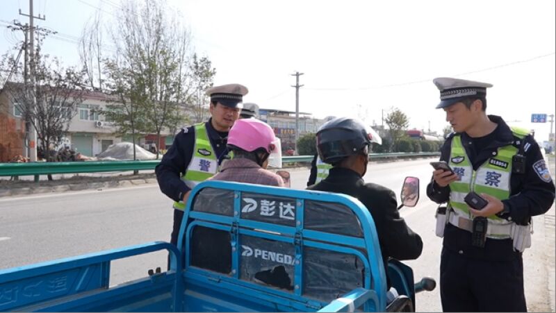 交警對(duì)三輪電動(dòng)車(chē)違法載人進(jìn)行宣教