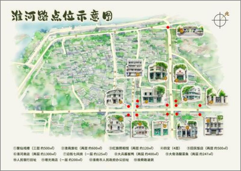 淮河老街改造還堅(jiān)持“修舊如舊,有效利用”,重在重塑城市歷史肌理。“一主多支”的動線設(shè)計(jì)串聯(lián)起復(fù)刻的田家庵火車站、修復(fù)后的老市政府、工商銀行、淮河商場、新華書店等歷史建筑,讓它們不再是孤立的景點(diǎn),而是融入市井的有機(jī)部分。