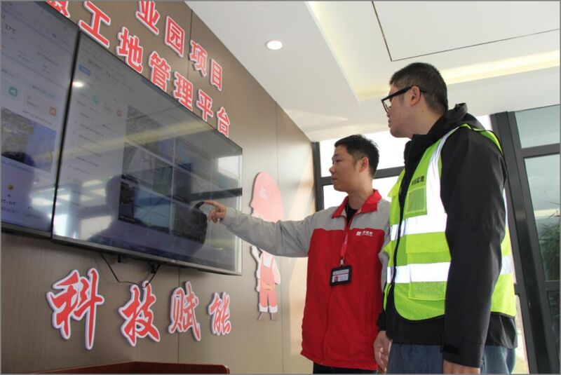 在項(xiàng)目部智慧工地管理平臺,記者看到,大屏上清晰顯示“今日考勤數(shù)345人”,18個在線攝像頭實(shí)時(shí)查看各重點(diǎn)作業(yè)面施工情況。施工方現(xiàn)場負(fù)責(zé)人告訴記者:“施工人數(shù)最多時(shí)達(dá)到460人,現(xiàn)場配備6臺塔吊、4臺物料提升機(jī),并與專業(yè)機(jī)械租賃單位簽訂24小時(shí)運(yùn)轉(zhuǎn)協(xié)議,保障垂直運(yùn)輸需求!