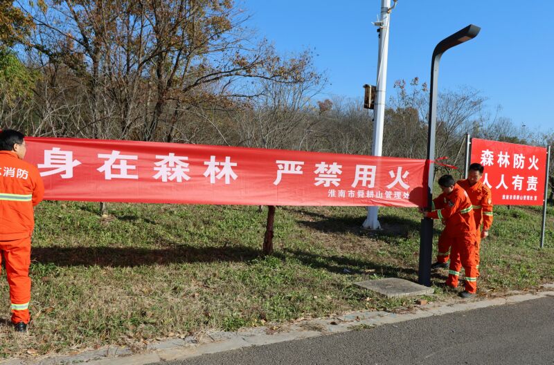 11月19日,市舜耕山管理處工作人員在環(huán)山路口懸掛宣傳橫幅。冬天來臨天干物燥,森林火險等級高,森林防火形勢嚴峻,我市林業(yè)部門加強宣傳,提升全社會防火意識,引導市民自覺遵守法律法規(guī),防患于未然。