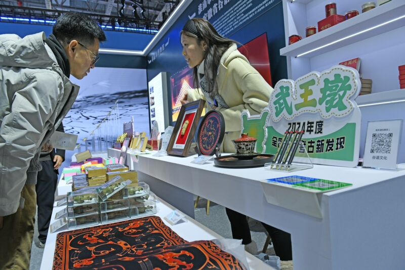 圖為安徽谷語文化產(chǎn)業(yè)有限公司推出的武王墩主題系列文創(chuàng)產(chǎn)品成為展會中爆款產(chǎn)品。(記者 陳彬 攝)