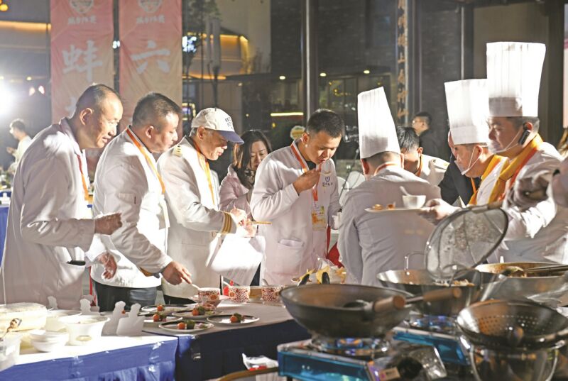 淮南主會(huì)場(chǎng)現(xiàn)場(chǎng),專業(yè)評(píng)委對(duì)選手特色菜進(jìn)行品嘗打分。