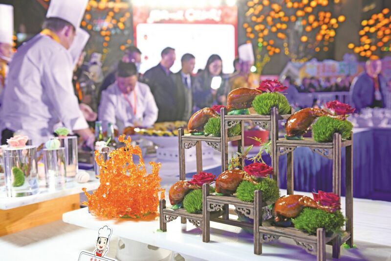 11月30日,“超級(jí)皖”美食爭(zhēng)霸賽城市戰(zhàn)隊(duì)PK賽現(xiàn)場(chǎng),淮南市美食戰(zhàn)隊(duì)展出精美的淮王宴。