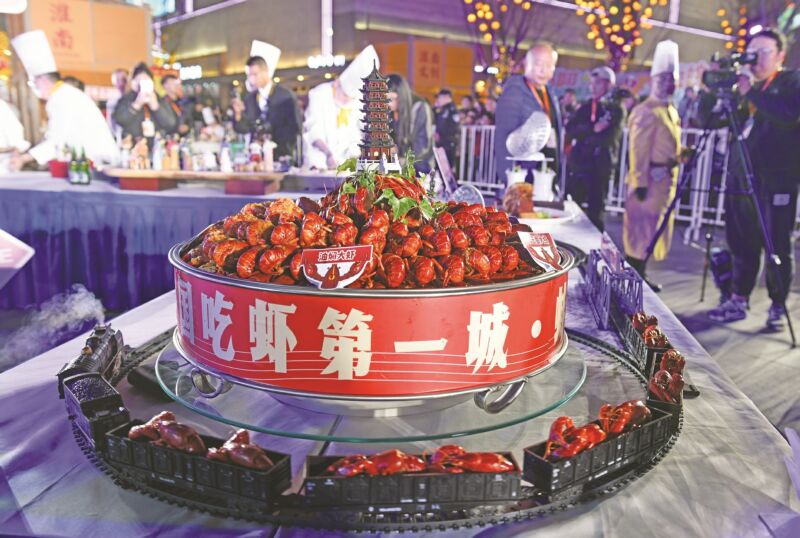 蚌埠市美食戰(zhàn)隊(duì)通過小火車托運(yùn)大龍蝦特色美食,講述蚌埠城市故事。