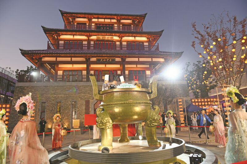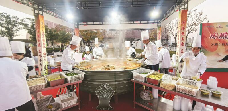 淮南主會(huì)場(chǎng)現(xiàn)場(chǎng),以楚大鼎造型大鍋熬制的淮南牛肉湯可以滿足5000余名游客、市民共同免費(fèi)品嘗。