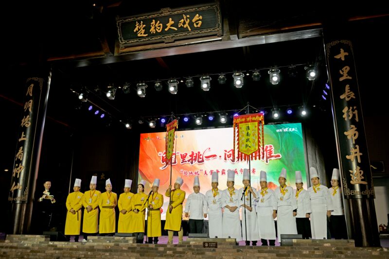 淮南市主會(huì)場(chǎng)舉行“楚韻迎賓,鐘鳴入城”特色美食戰(zhàn)隊(duì)入城儀式,吸引游客觀看。