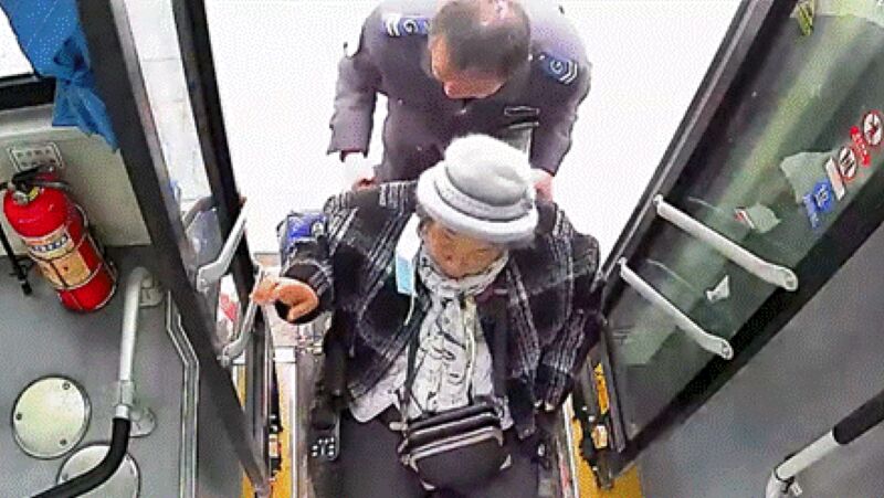 事發(fā)時,5路車駕駛員王寶根正準備從和平村終點站發(fā)車。在例行檢查中,他注意到站臺上有一位坐著輪椅的大媽,似乎需要幫助。王師傅毫不猶豫,立刻上前詢問!拔疑辖帧保髬尰卮鸬。當被問到要去哪里時,她表示要到新華醫(yī)院。簡單對話后,王師傅意識到需要將輪椅安全地推上公交車。