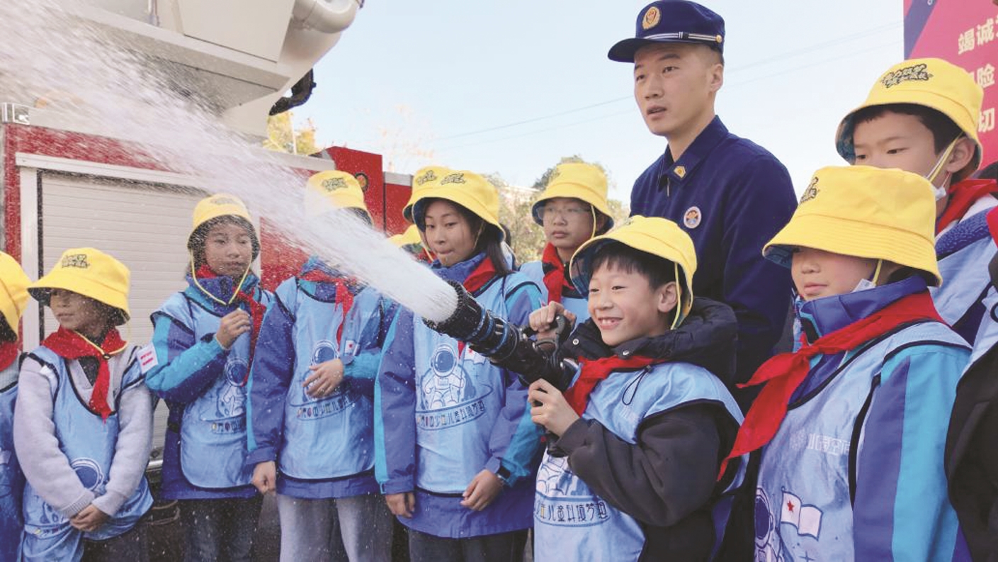 日前,“青力筑夢(mèng) 暖‘新’成長(zhǎng)”淮南市新就業(yè)群體子女主題研學(xué)交流活動(dòng)舉行。團(tuán)市委組織40名新就業(yè)群體子女,前往山南新區(qū)消防救援大隊(duì)、淮南科技館及市少先隊(duì)校外實(shí)踐基地(水滴空間),開(kāi)啟了一場(chǎng)集消防體驗(yàn)、科技探秘、國(guó)防教育與非遺文化于一體的沉浸式研學(xué)之旅。圖為少年兒童在學(xué)習(xí)使用消防救援水槍。