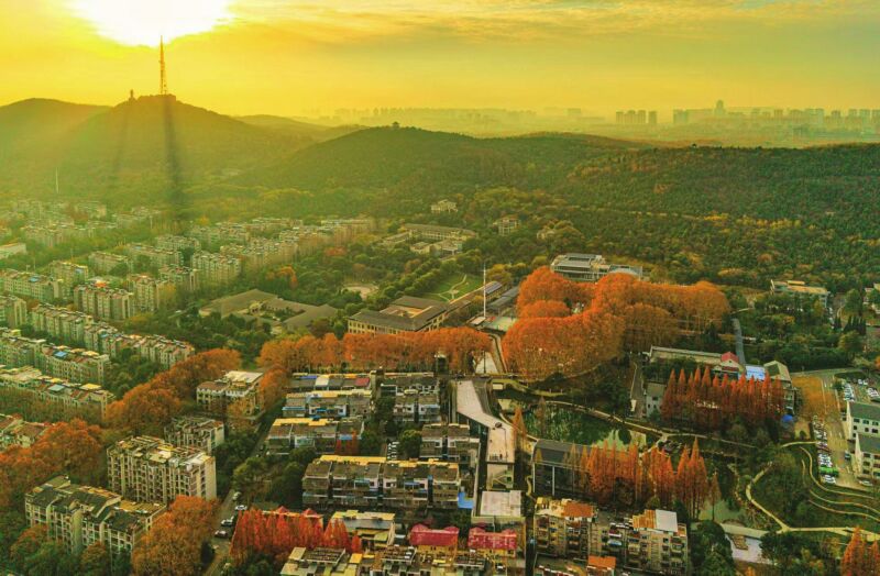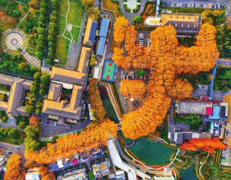 冬意漸濃,舜耕山腳下的法國梧桐身披金甲,如霞光鋪道。高空俯瞰,連綿樹冠勾勒出奇特的側(cè)影,靜臥在山腳下,構(gòu)成一幅靜謐而磅礴的冬日畫卷。