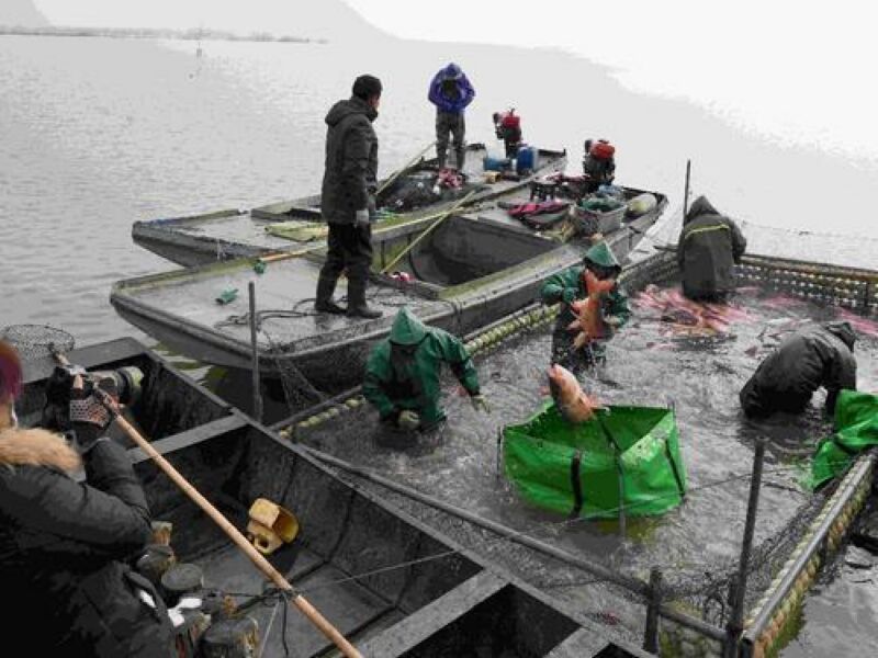 1月1日,焦崗湖冬捕現(xiàn)場(chǎng),工人們正開(kāi)展?jié)O獲捕撈作業(yè),湖面一派人歡魚躍的豐收景象。當(dāng)日,“濱湖獻(xiàn)瑞?漁樂(lè)迎新——焦崗湖首屆生態(tài)冬捕漁獲節(jié)”開(kāi)幕,F(xiàn)場(chǎng)可賞民俗、嘗湖鮮、觀冬捕,活動(dòng)集中展現(xiàn)了焦崗湖多年來(lái)堅(jiān)持“生態(tài)優(yōu)先、綠色發(fā)展、以魚凈水、以漁養(yǎng)湖”的發(fā)展理念。