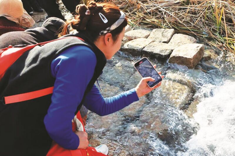 溫泉有三個(gè)泉眼,泉水汩汩而出,嘩嘩流淌。經(jīng)測(cè)試,水溫穩(wěn)定在21度左右。溫泉自發(fā)現(xiàn)以來(lái),這片僻靜的荒野陡然人聲鼎沸,游人從四面八方紛至沓來(lái),熱鬧非凡。有人為溫泉冠名為“春申溫泉”,亦有人稱之為“旺淮泉”。