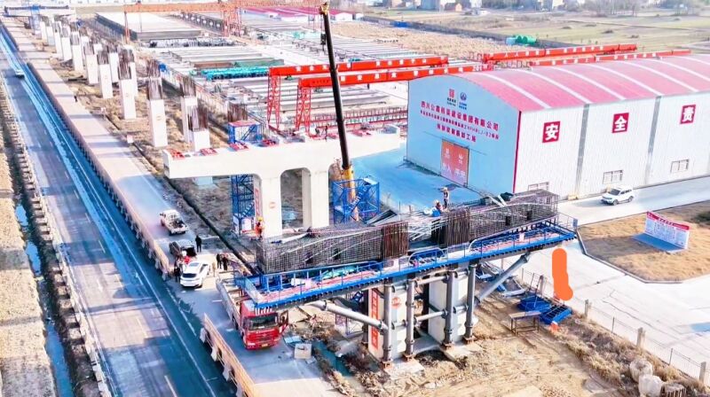 在路基施工二標段,各類大型機械轟鳴運轉,建設者們爭分奪秒推進工程進度!爱斍罢_展大懸臂蓋梁施工。”四川路橋集團該標段生產(chǎn)副經(jīng)理彭紫陽介紹,針對冬季混凝土施工溫度低的難題,施工團隊提前謀劃、精準施策,通過增加養(yǎng)生措施保障施工質量,全力搶工期、趕進度。截至目前,該標段已完成清表4.9公里、主線施工便道3.7公里,涵洞工程完成32道,樁基澆筑888根,承臺施工162道,墩柱澆筑432根,梁板預制188片,各項關鍵工序有序銜接。