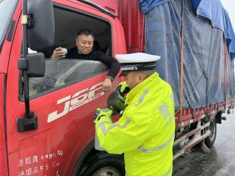 在驛站內(nèi),工作人員已備好熱水、簡(jiǎn)餐及臨時(shí)休息場(chǎng)所,為長(zhǎng)途奔波的司機(jī)提供了一份寒夜中的溫暖。一位來自山東的貨運(yùn)司機(jī)感慨:“路上又冷又滑,心里挺著急的。多虧交警同志及時(shí)出現(xiàn),帶我們到這里避寒,不然這晚上真不知道咋熬過去。”