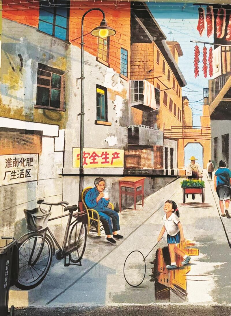 1958年的化工回響,日前在安徽淮化集團電影院斑駁的紅磚瓦礫間綿延。這里曾是淮南化工產(chǎn)業(yè)的啟航地,承載著幾代建設(shè)者的奮斗印記。一幅幅色彩鮮明的墻繪,巧妙融合了淮化建廠初期的奮斗歲月、熱火朝天的生產(chǎn)場景與現(xiàn)代生活的時尚氣息,讓這份跨越半個多世紀(jì)的化工硬核記憶,在“工業(yè)+文創(chuàng)”的融合中煥發(fā)新生。