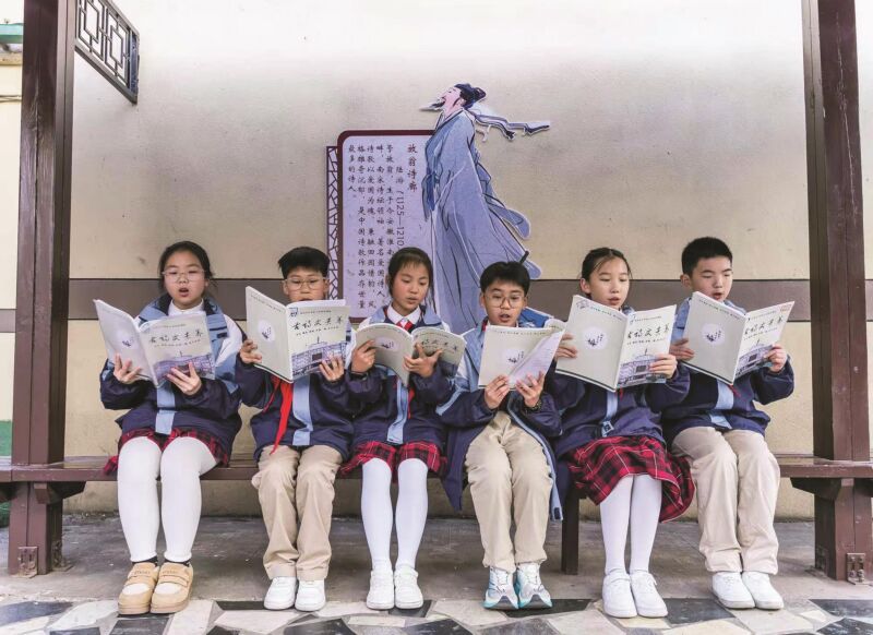 原來,淮南文匯學(xué)校最近建起了一座“陸游詩廊”,既能起到遮陽避雨的作用,同學(xué)們抬頭還能看到偉大詩人陸游的詩句。從“樓船夜雪瓜洲渡,鐵馬秋風(fēng)大散關(guān)”的豪放,到“山重水復(fù)疑無路,柳暗花明又一村”的豁達;從“零落成泥碾作塵,只有香如故”的高尚,到“小樓一夜聽春雨,深巷明朝賣杏花”的細膩,再到“王師北定中原日,家祭無忘告乃翁”的愛國絕唱。同學(xué)們走在詩廊中,一步一景感受傳統(tǒng)文化的魅力,讓詩詞不僅僅局限于書本中,更是成為校園里“會說話”的風(fēng)景。