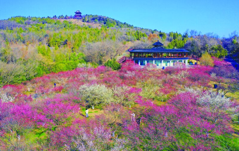 馬年新春到來(lái),舜耕山梅園的紅梅競(jìng)相綻放、美不勝收。