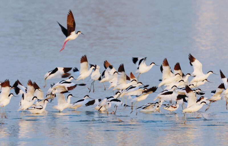 近日,淮河兩岸越冬的候鳥開始活躍,準備開春后向北遷徙。圖為大通區(qū)蔡城塘里的反嘴鷸、黑翅長腳鷸在飛行嬉鬧。